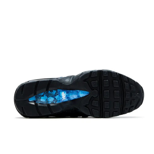 The 2024 version of the Stash x Nike Air Max 95 uses the New York graffiti artist's signature color palette. Based on their previous 2006 AM95 collab, this version is slightly different with an aqua blue ripstop upper with wavy no-sew overlays. Overlapping side panels are made from nubuck and leather, progressing on a grey gradient. Hook-and-loop patches on the tongue adorn the design, which has a concealed pouch secured with a zipper. These shoes have a black foam midsole, covered in blue speckled details and coupled with an Air-sole unit for a resilient feel.